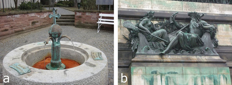 Die Antwort auf diese Frage lautet: ja, in jedem Falle. Die grünliche Farbe der „Patina“ ist allgemein bekannt. So wird die Verwitterungsschicht genannt, die auf im Freien stehenden Bronzeskulpturen (Abb.1 und 2) und auf den mit Kupferblech gedeckten Dächern (Abb. 3) zur besonderen Zierde wird. Diese Verwitterungsschicht kann natürlichen Ursprungs sein oder künstlich und damit gewollt erzeugt werden.